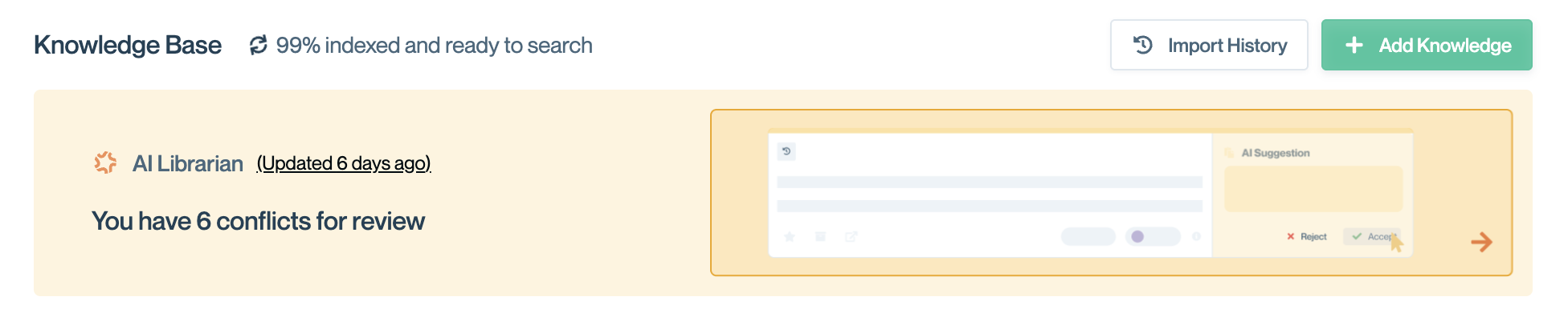 View the "AI Librarian" banner (if there's conflicts) at the top of the Knowledge Base page