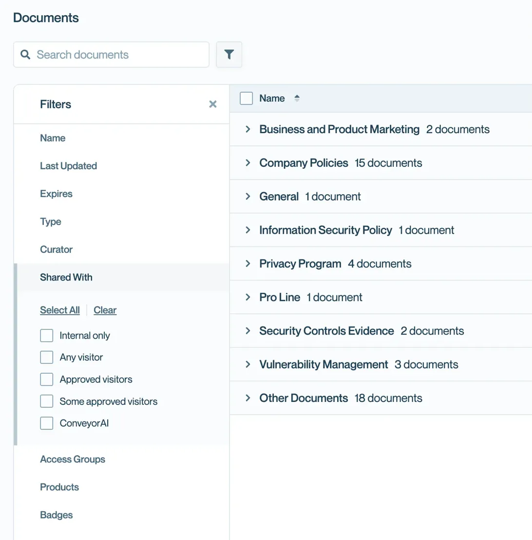 Prerequisites: At least two documents uploaded to your Trust Center