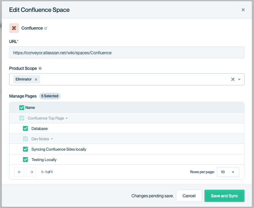 - The user must navigate to the Knowledge Base -> Add Confluence, after the Confluence integration is enabled. They will see a list of non-personal Confluence pages and spaces. Once they've selected the pages and spaces and added any product lines, they can click "Save and Sync".