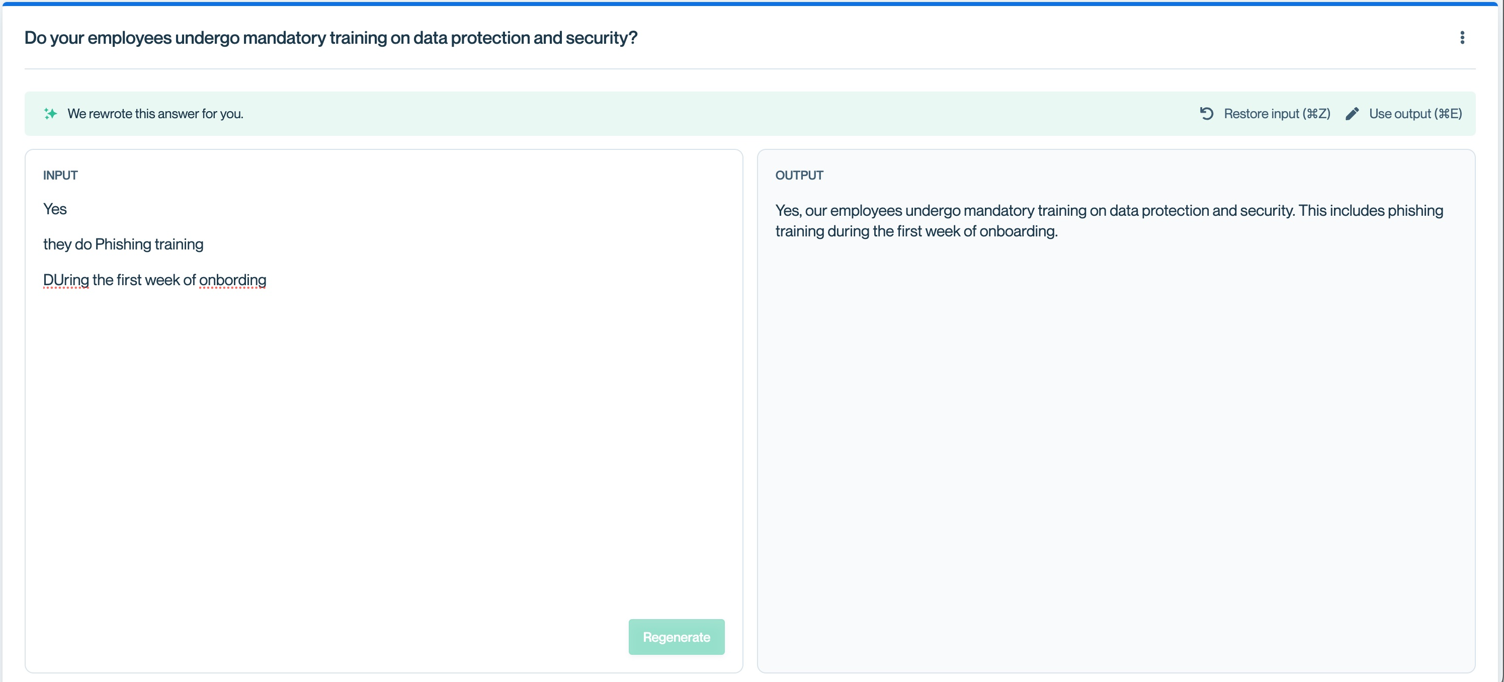 Sometimes, your KB has the perfect q&a already, and the q&a was already included as a "Source." If you want to use the language verbatim, just hit "Append to answer" (the + button) on the source.
