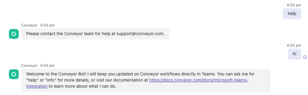 - Obtain a .zip of the Conveyor Teams Bot from [email protected] or your CSM.