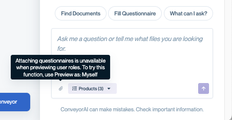 When previewing as other user roles, you may see the Fill Questionnaire button disabled or a message indicating that questionnaire answering is unavailable.