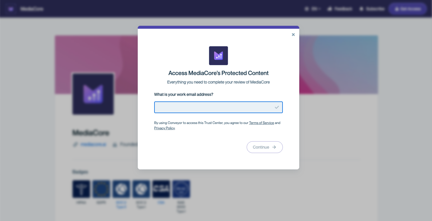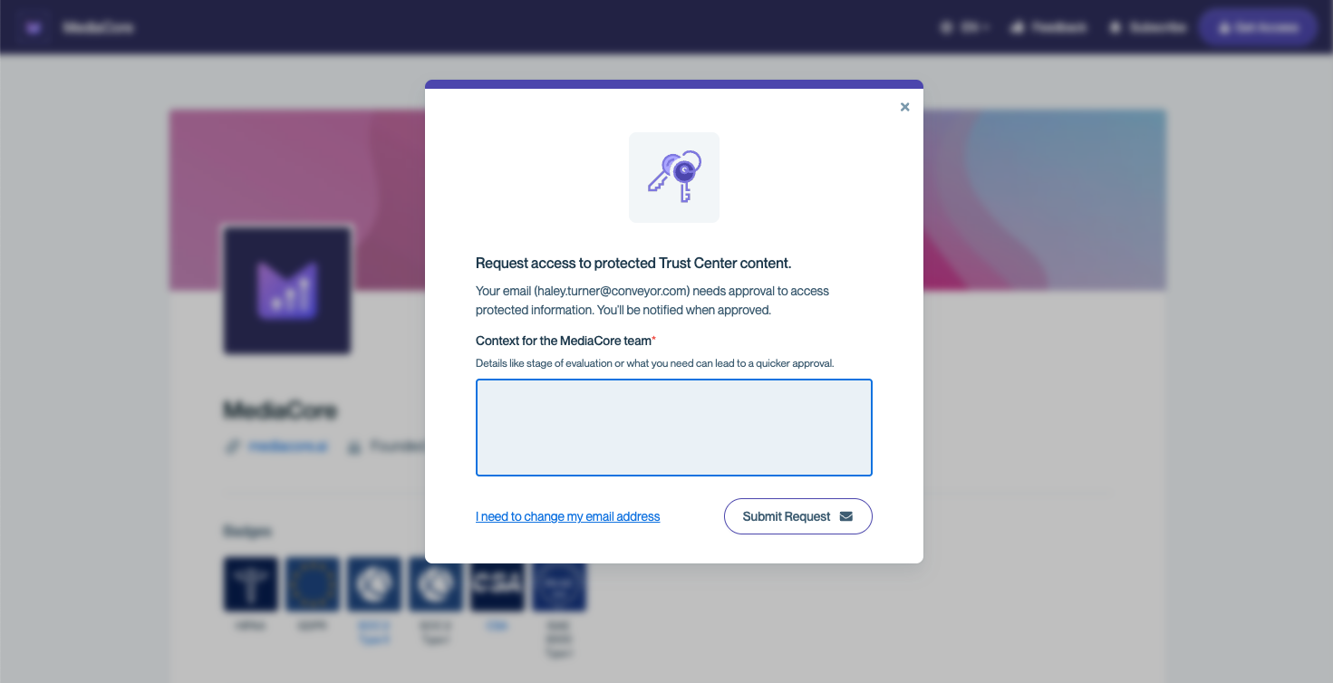 You can also request access directly from the Trust Center page. Enter your work email and you'll be granted access once the company reviews and approves your request.